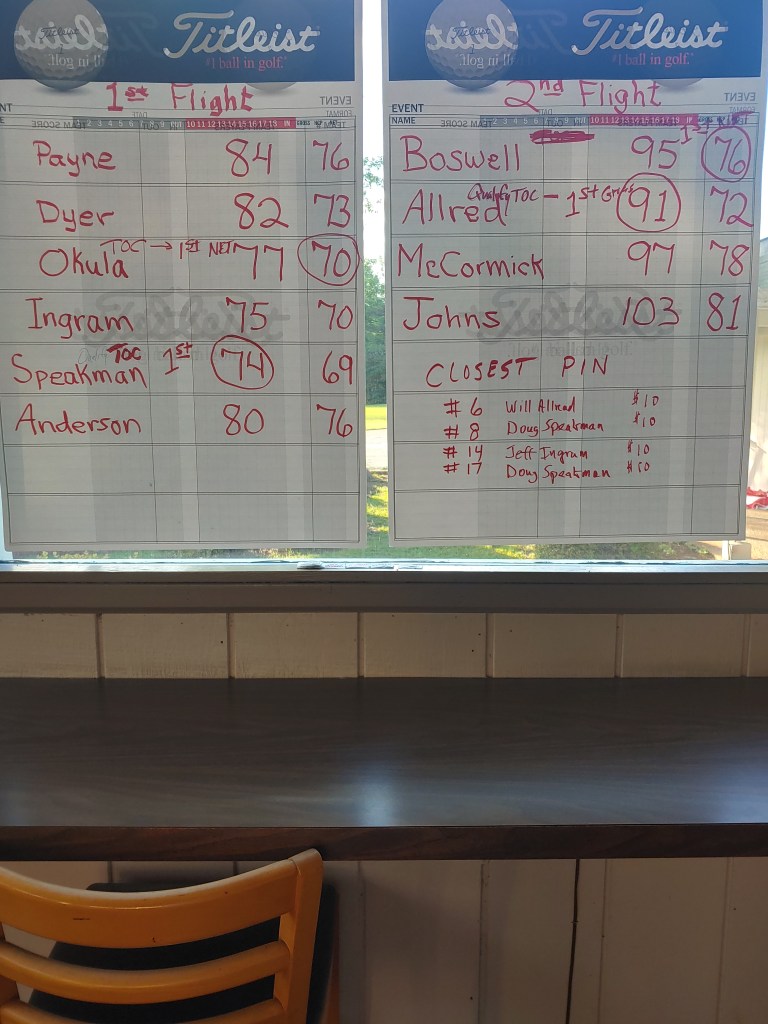 We had our Saturday Individual Metal rain out tournament. Only 10 players but several new member sign ups. Three members qualified for TOC in October , Mike O’Kula, Doug Speakman and Will Allred. Next tournament and last one for non-members to compete in is next Tuesday, Two-Man total net! Sign up sheet is in Snack Shop on Bulletin Board. The last day to join for the reduced fee of $80 (regular $95) is April 30th.