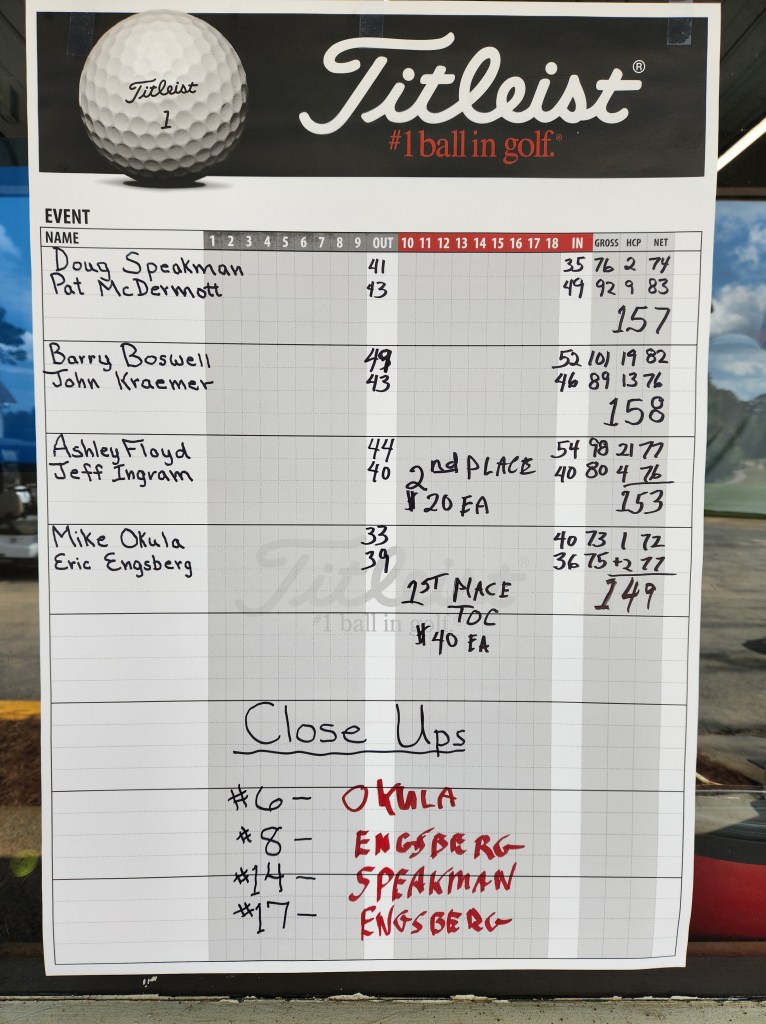 MAY 25TH TWO PERSON TOTAL NET Share this: Click to share on X (Opens in new window) X Click to share on Facebook (Opens in new window) Facebook Like Loading... Related By speakmangolf President Bull Creek Mens Golf Association View all of speakmangolf's posts.