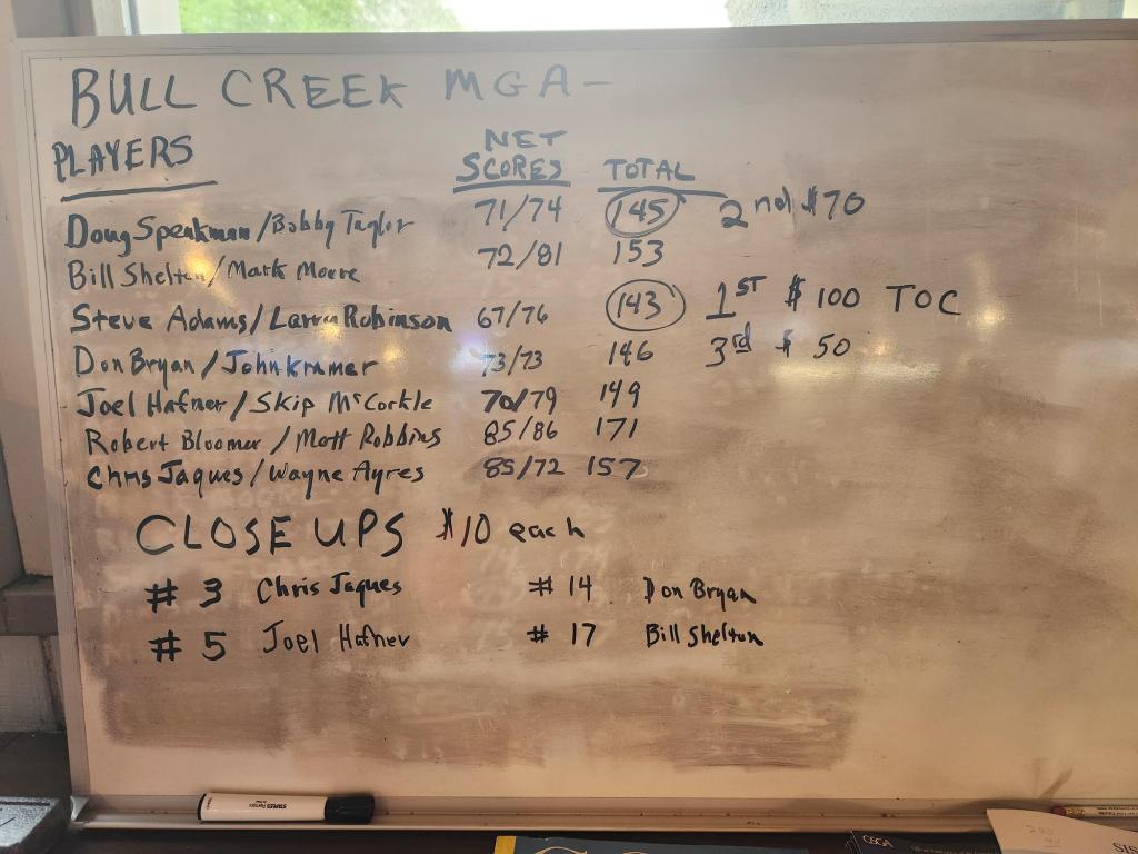 1st Low Net Steve Adams and Larry Robinson ($50 per player) Qualify for TOC