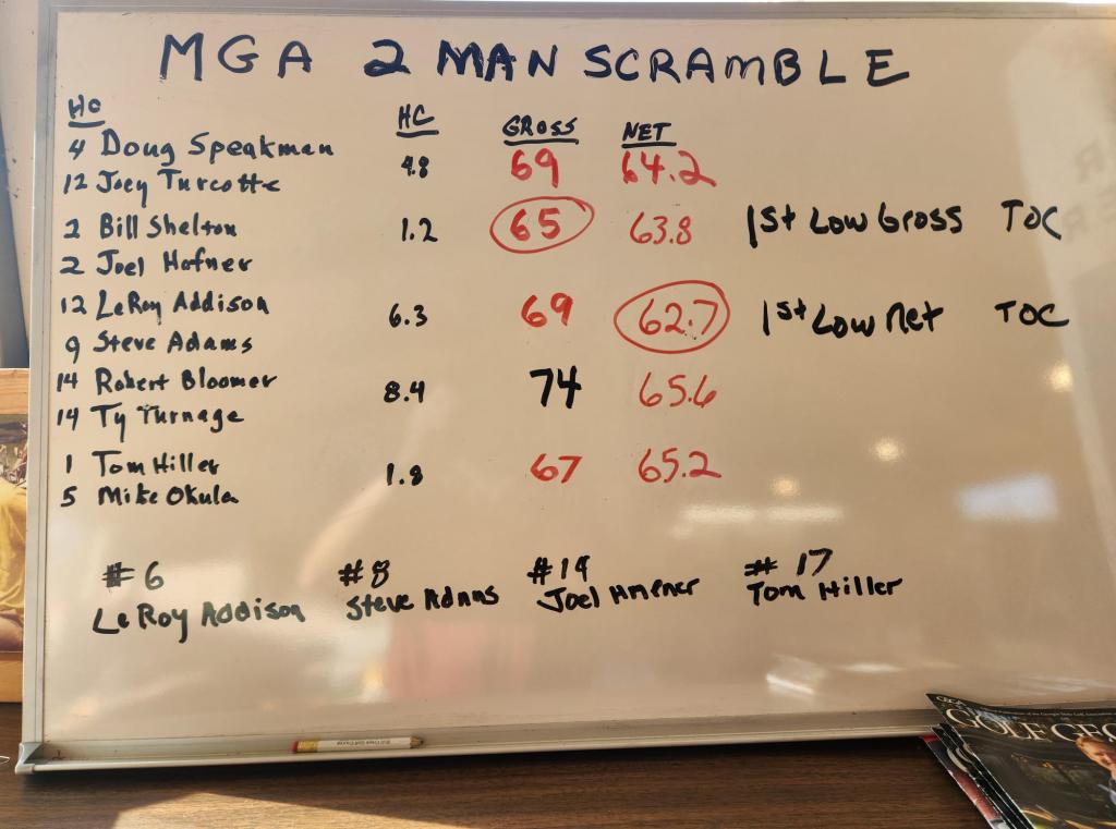 The weather was AWESOME! We had 5 teams using 30% of their combined handicaps. We paid out for 1st Gross and 1st Net, $80 per team. Four people qualified for TOC for this year and everyone who played will get a ticket for the raffle at the end of the year at our annual Christmas party!